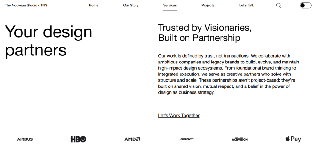 The Nouveau Studio partnered with WebglowX to create a high-end digital presence reflecting their expertise in branding, packaging, and creative strategy. Their objective was to differentiate themselves as a premium design studio with a clean, minimal, and luxurious web identity.